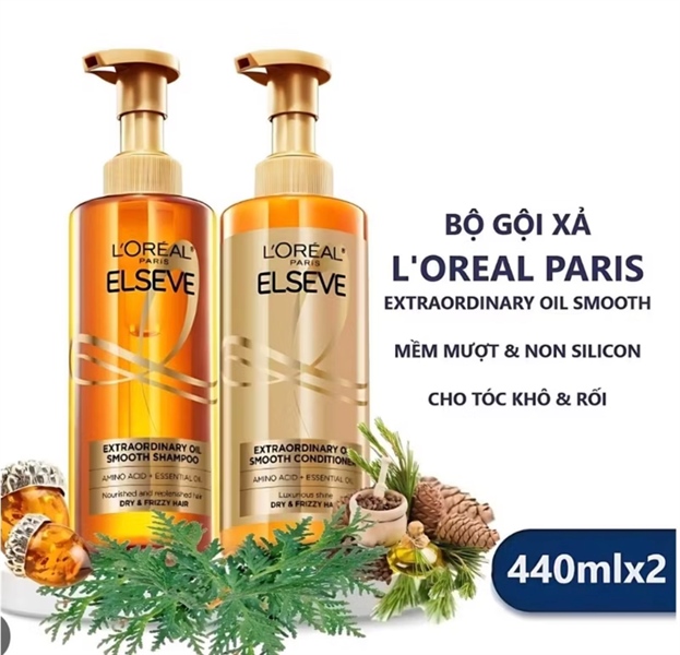Bộ Gội Xả Dưỡng Tóc Suôn Mượt Cao Cấp L'Oreal Paris 440ml x2